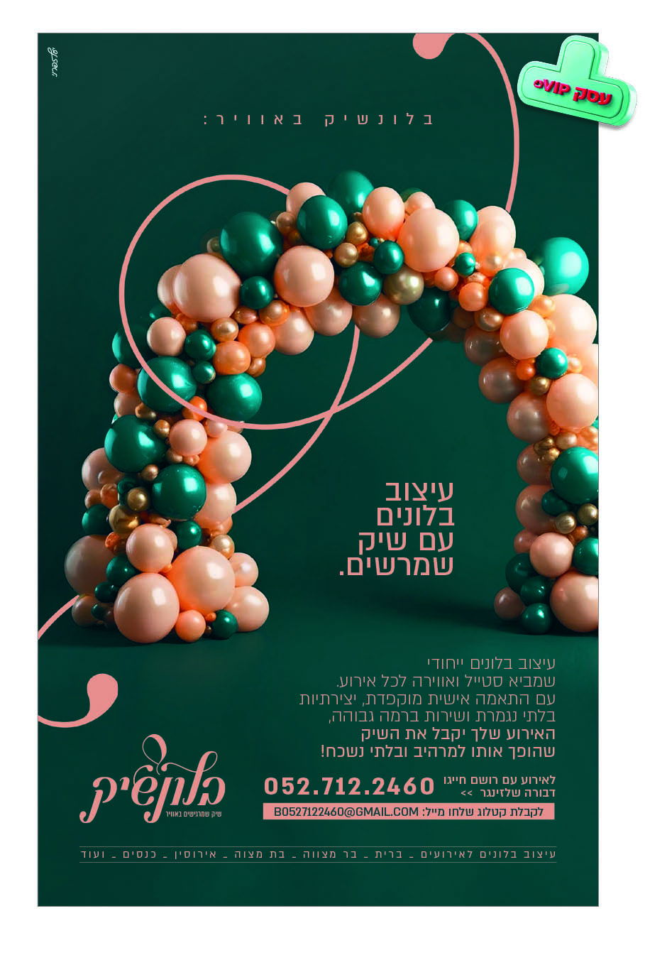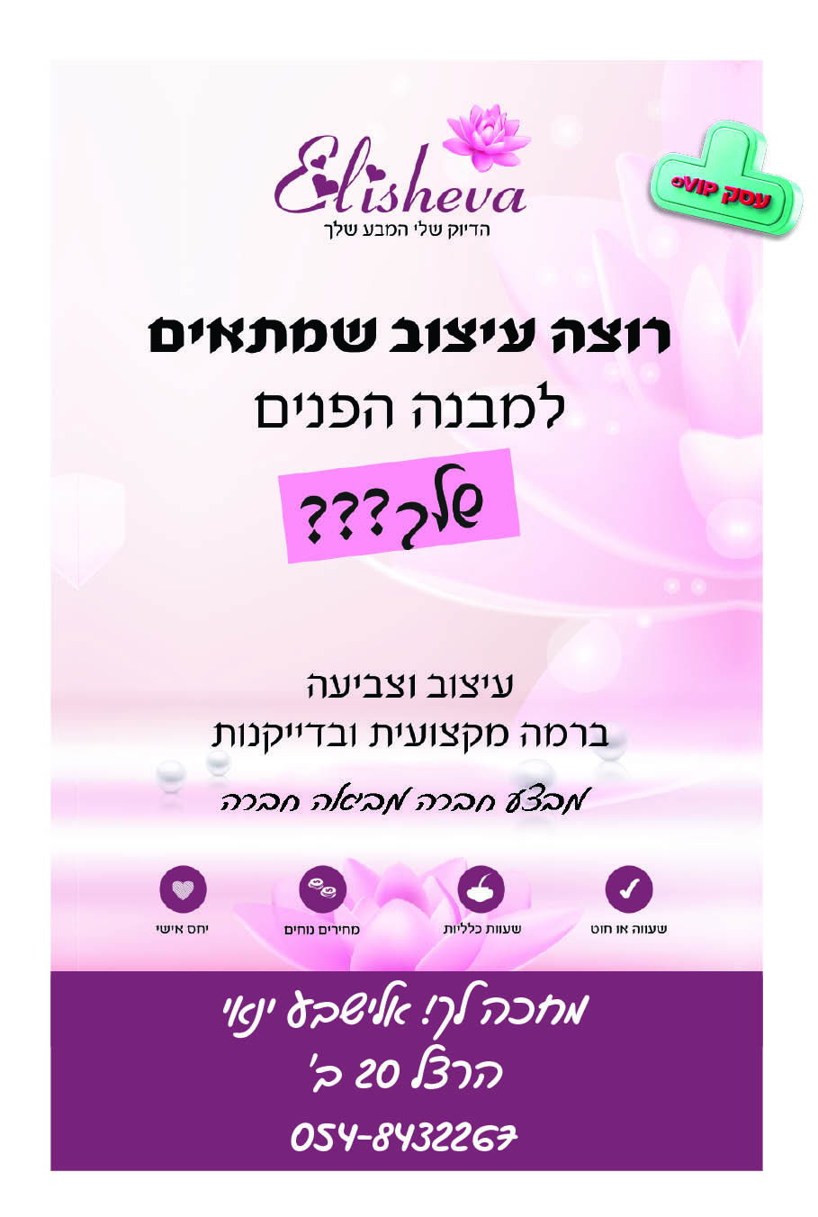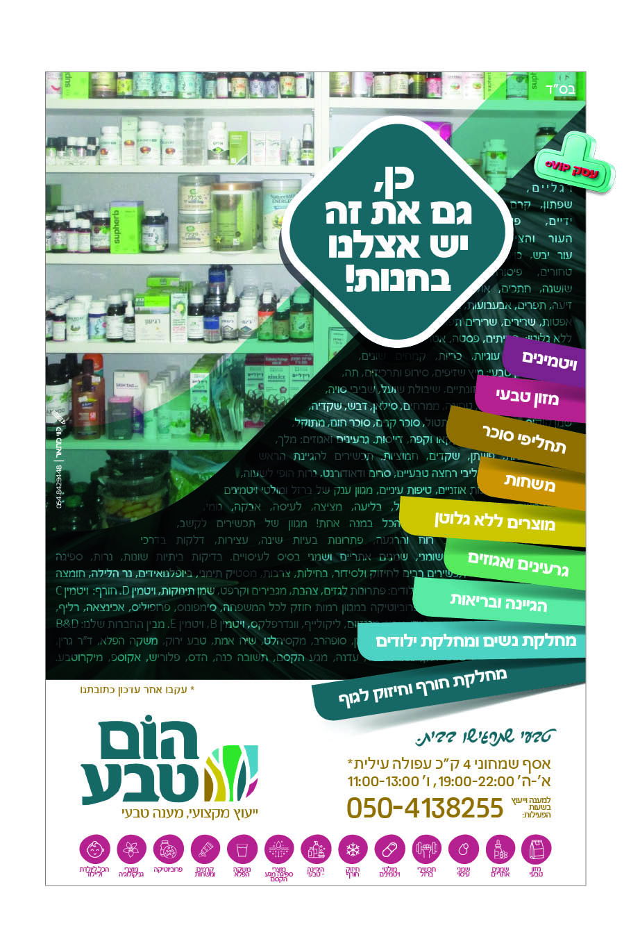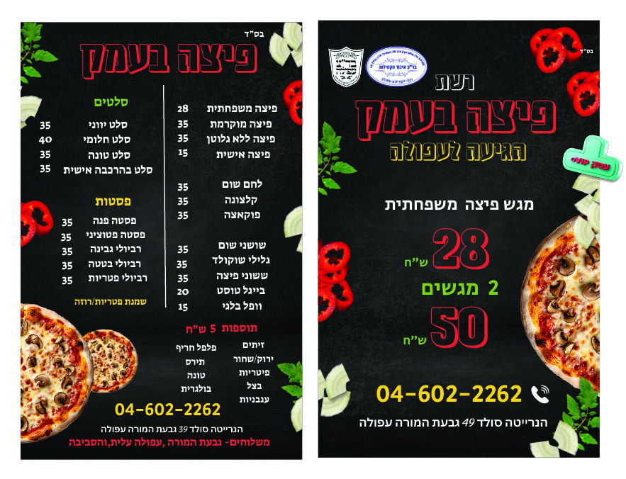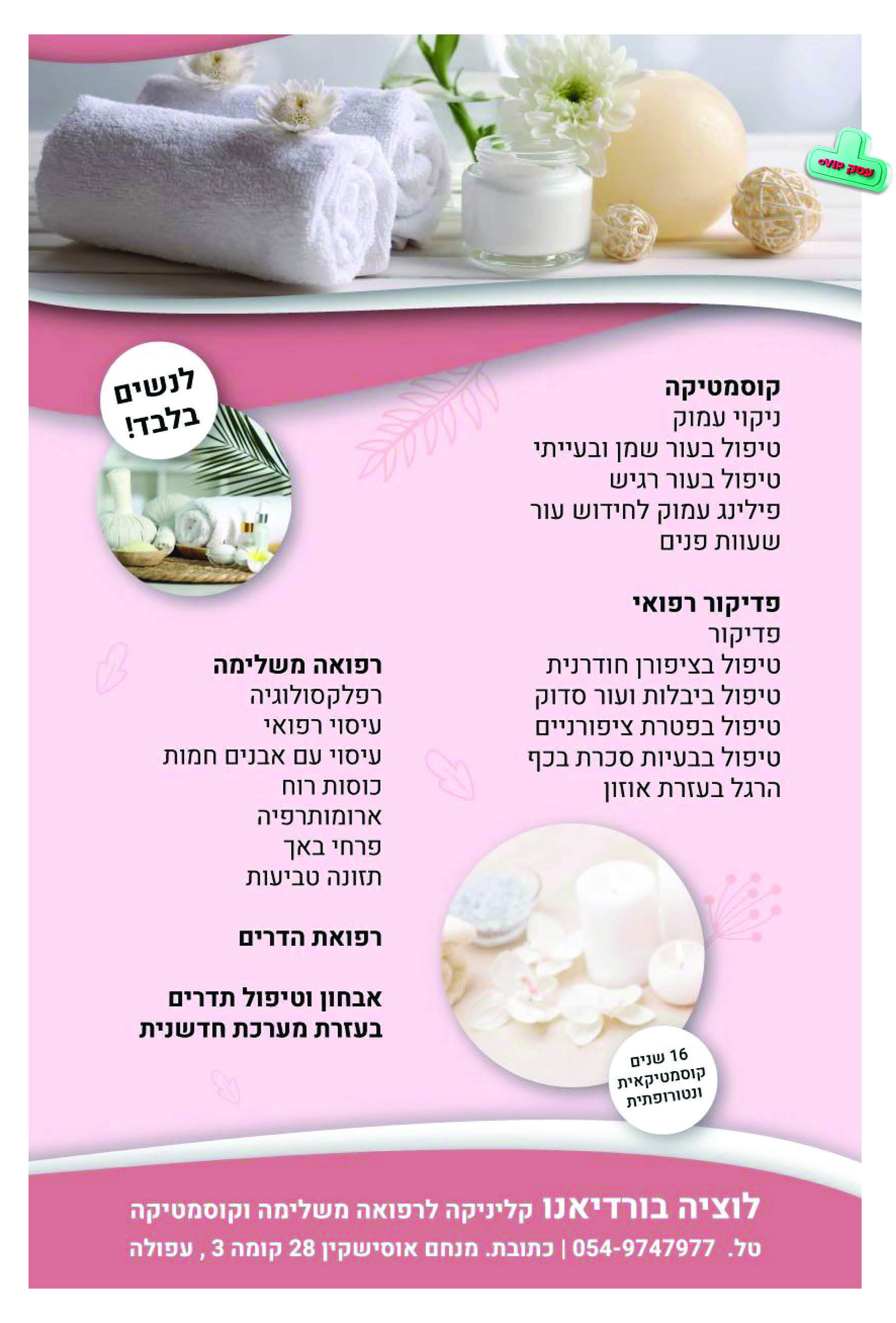 בלקין, ימים א'-ג' בתאום, ניתן לבוא עם ילדים, הבריגדה העברית 9 ג. המורה, 054-8474008 | אלאלוף, עגור 4 ג. המורה, 053-3178161 | ביגוד והנעלה יד 2 כחדש לכל המשפחה, משמר הירדן 14 עפולה, 058-3210103 | פרחי, הזמנת קומביזונים במבחר דגמים וצבעים לכל המצבים וכן גם בדגם חולצת בסיס כשרה, 054-8453017