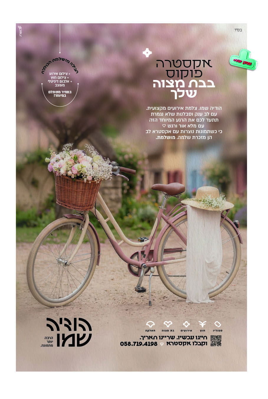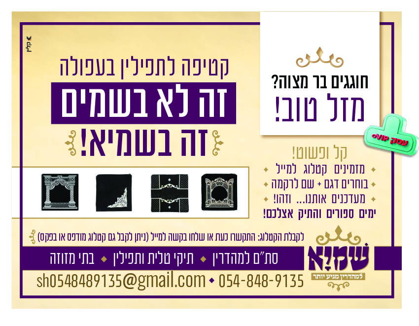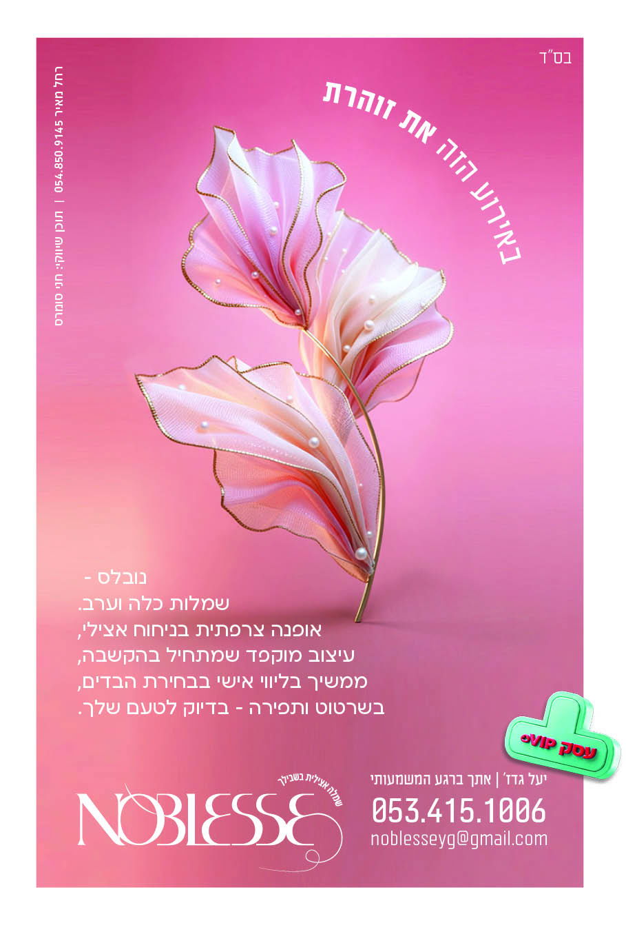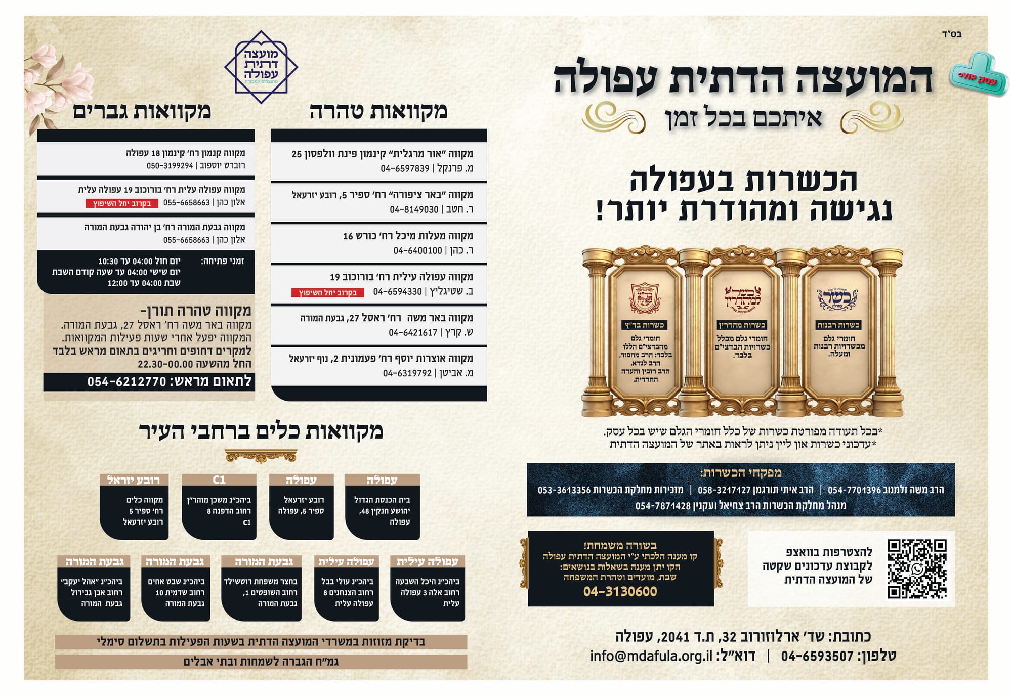 קרא עודיום רביעי ז' בניסן 25.03.26 אולם ביהכנ"ס נועם ה'בת"ת דרך אמת בין השעות 14:00-22:00 רחוב הנרייטה סולד 26 עפולה