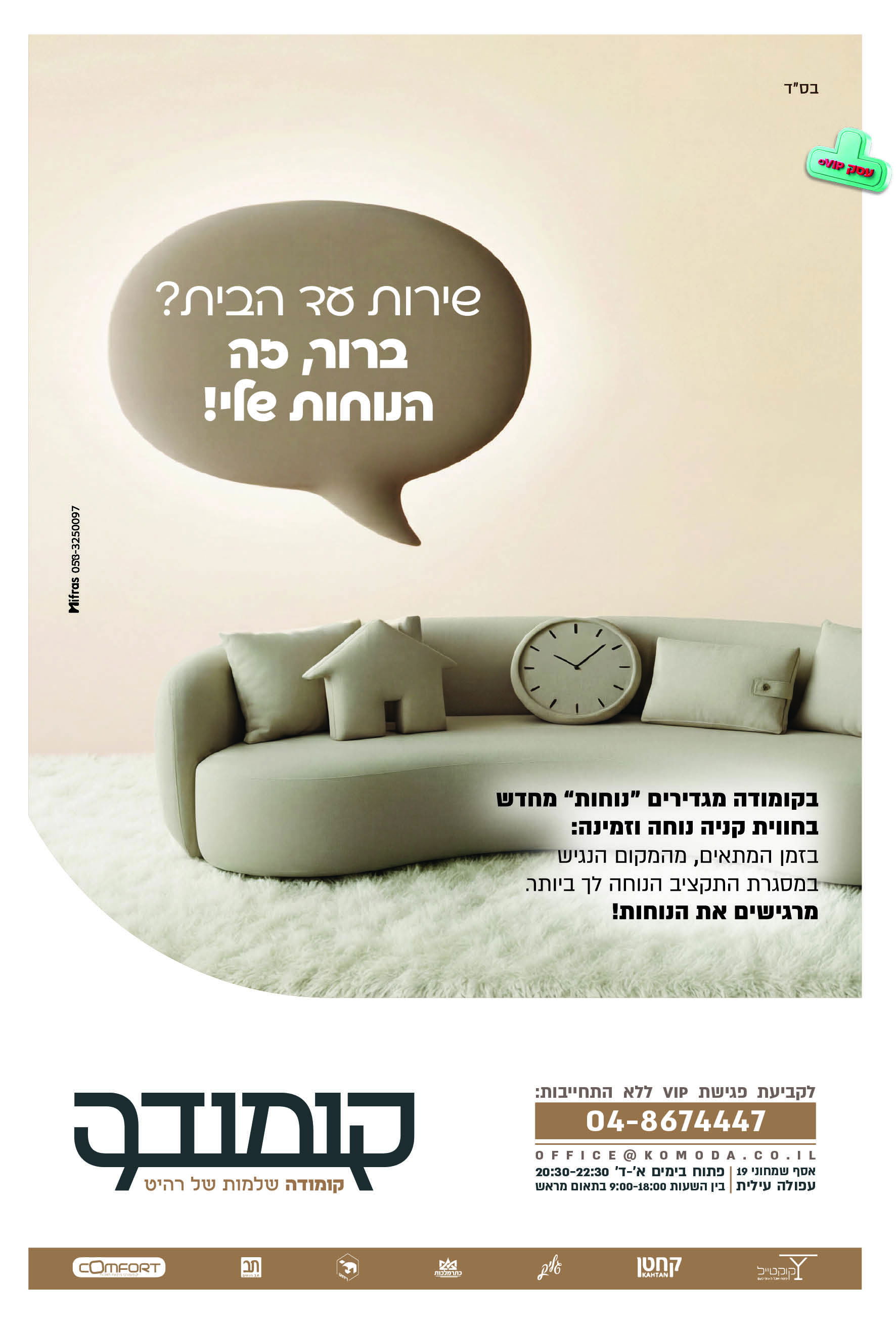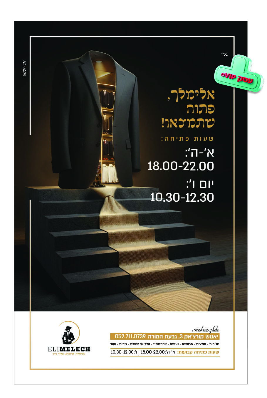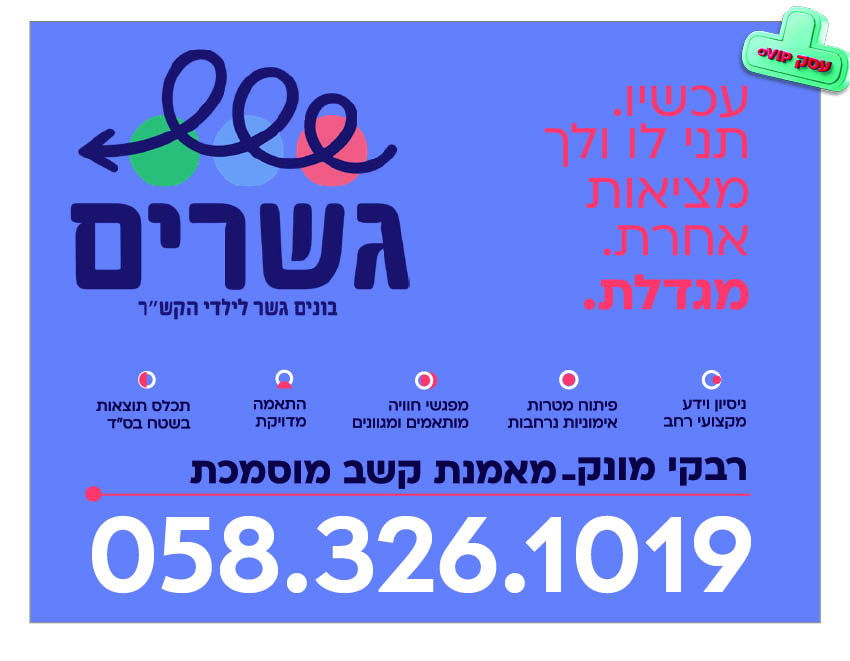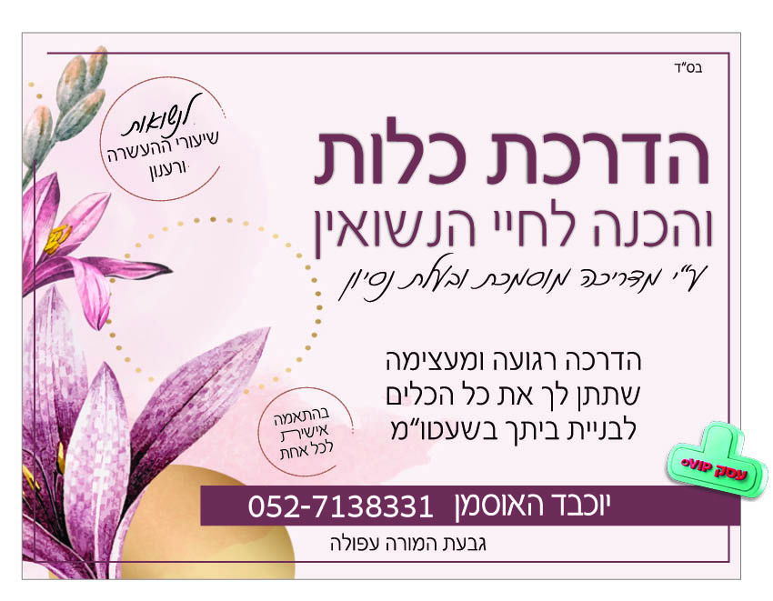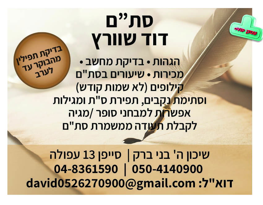 קרא עודיום רביעי ז' בניסן 25.03.26 אולם ביהכנ"ס נועם ה'בת"ת דרך אמת בין השעות 14:00-22:00 רחוב הנרייטה סולד 26 עפולה