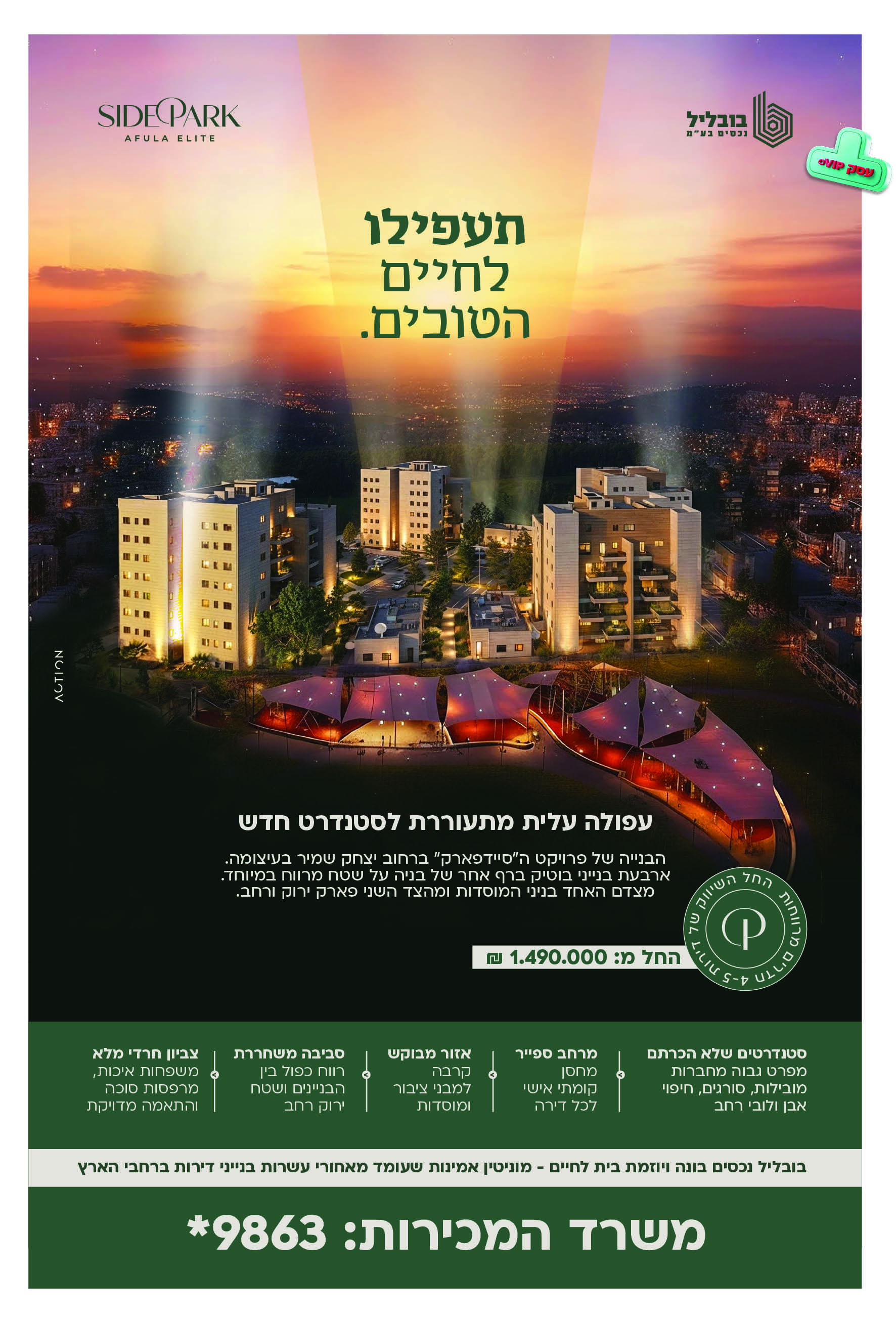 להתרשמות מהאתר שלי היכנס/י כאן!שם העסק: בובליל נכסים | תיאור העסק: פרויקט SIDEPARK, פרויקט בוטיק לציבור החרדי | כתובת: יצחק שמיר 48 ע. עילית | טלפון:*9836 | מייל: afulab118@gmail.com