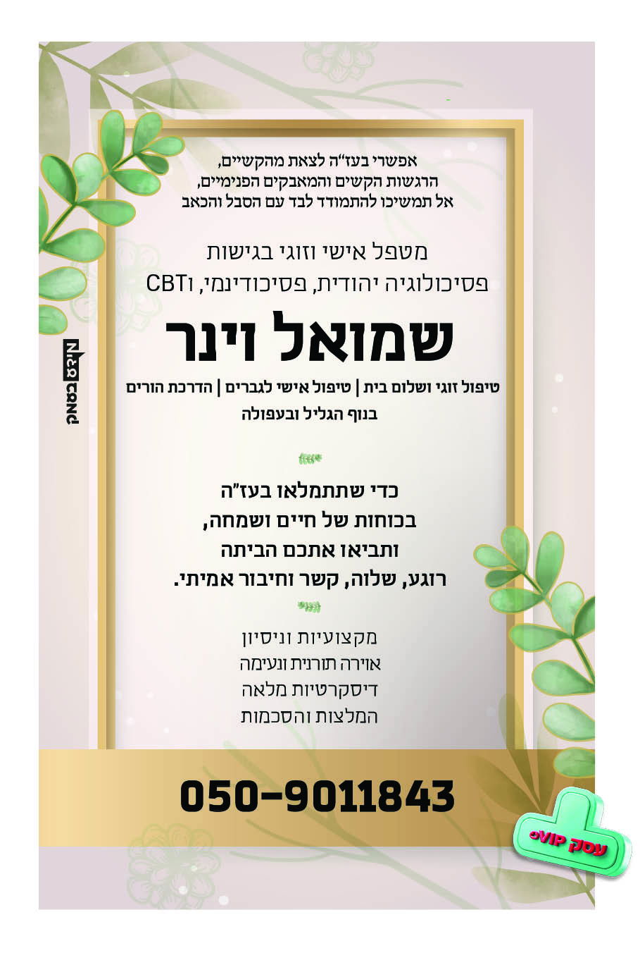 זקש, קונטיקט 5 ג. המורה, 052-7146618 | כהן, כוויות חבישה טבעית של שולמן בשיטת גרין, הרב פנחס מילר 3 הר יונה, 054-8403433 | אייזנבלט-זכרון יצחק, הרוגי מלכות 1 ג. המורה, 058-3268073 | קאהן-זכרון יצחק, חטפית 16 ג. המורה, 052-7616260 | סוקולובסקי-זכרון יצחק, שפינוזה 12 א' ג. המורה, 054-8492215