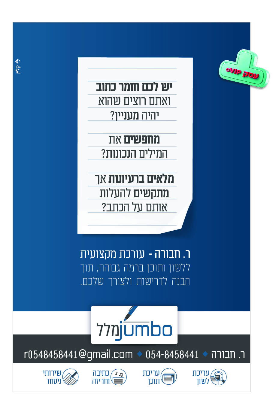 עבודות הגהה לכל סוגי הכתבים המוקלדים במומחיות ובמהירות. 050-4157637