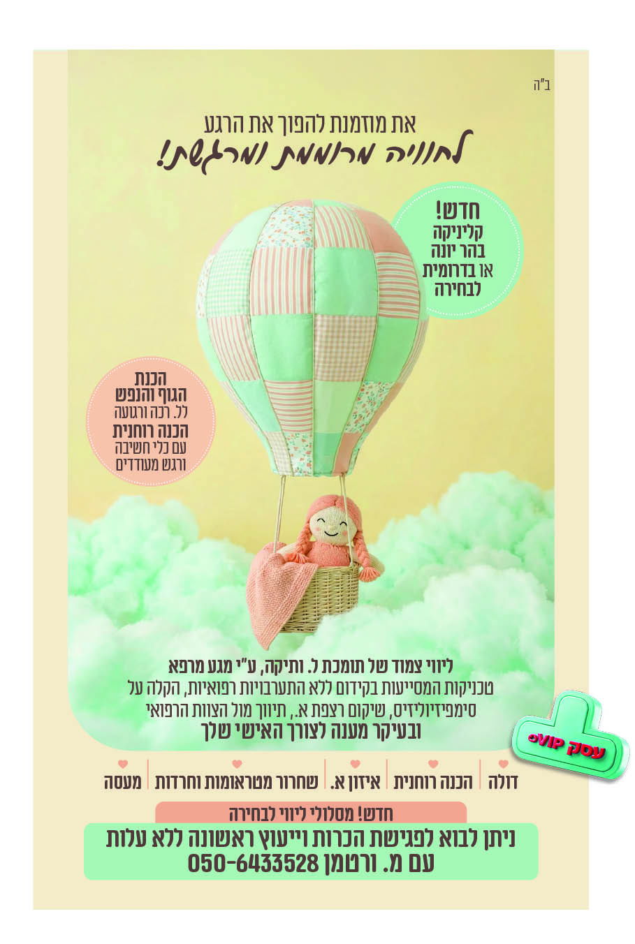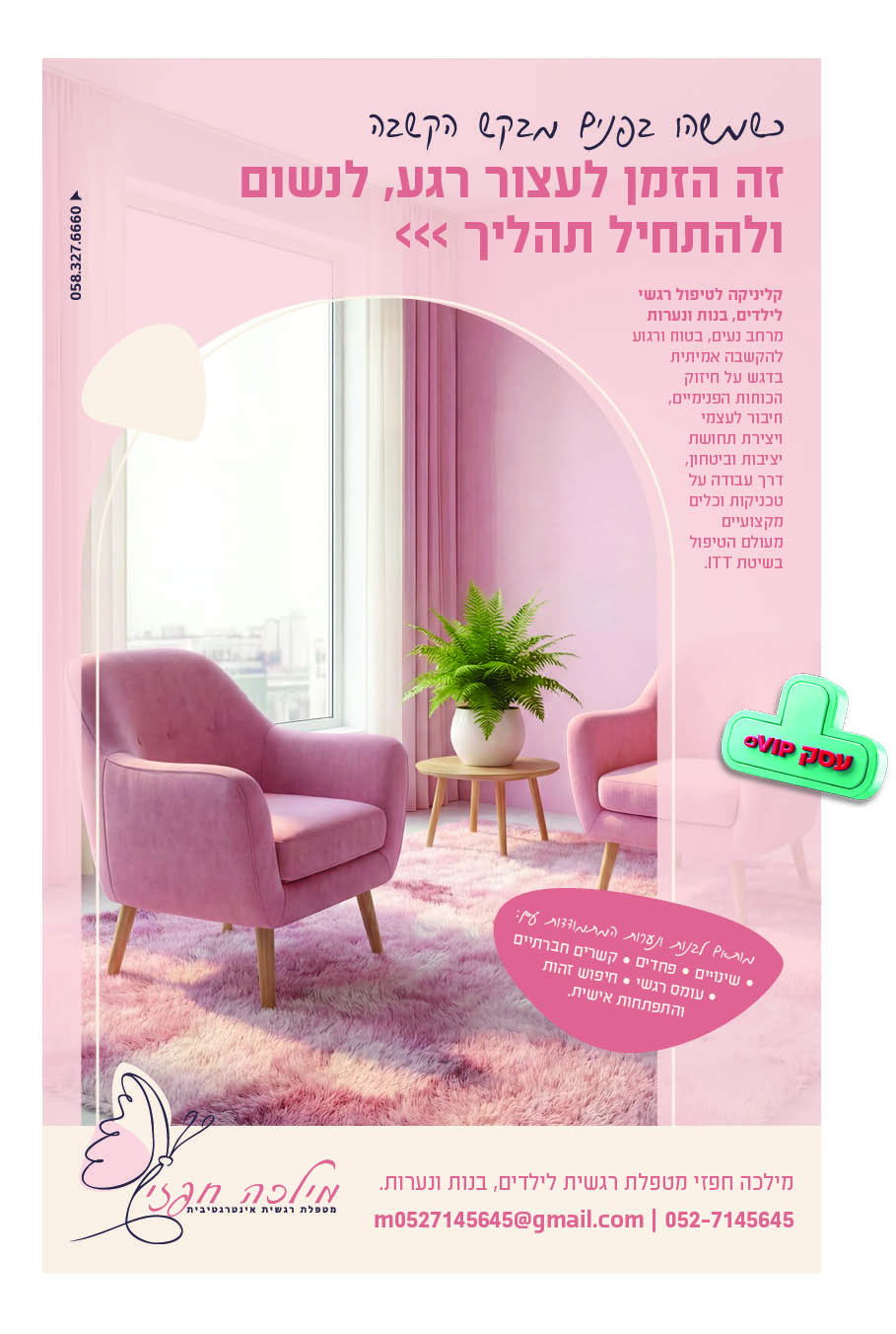 נפתחת בעפולה קבוצת ליווי ותמיכה לנשים המתמודדות עם אתגרי פריון. לפרטים: .058-3283419