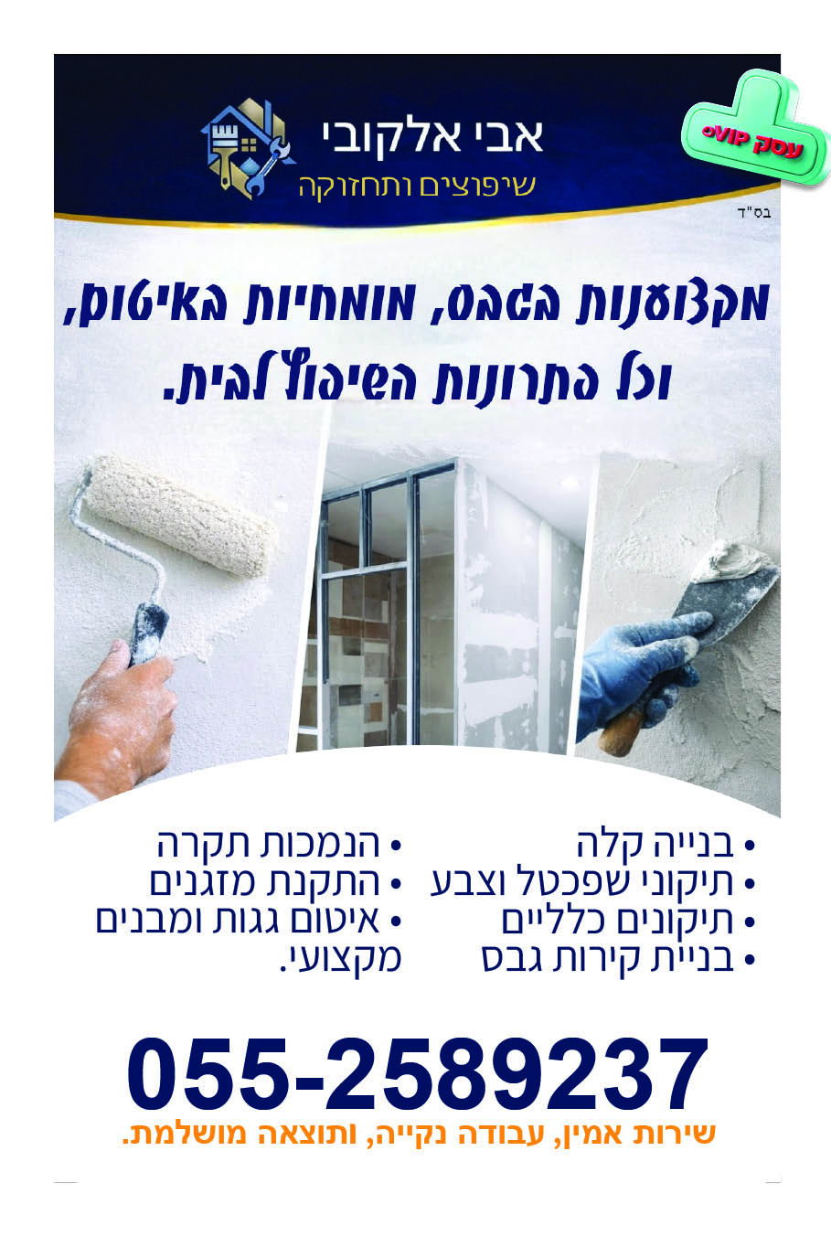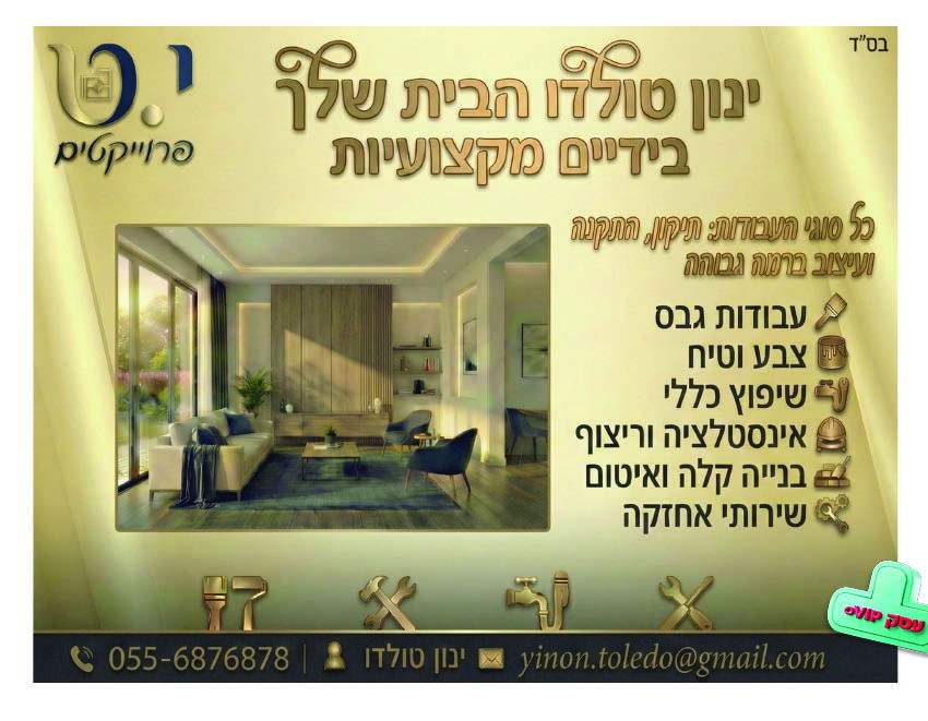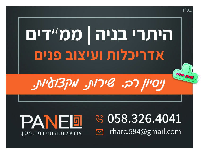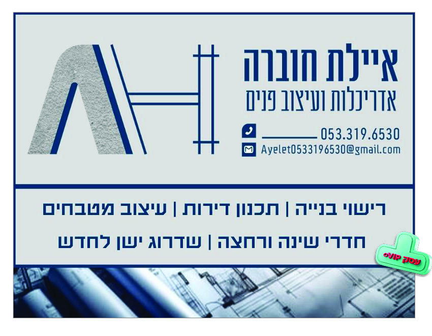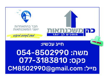 שם העסק: בובליל נכסים | תיאור העסק: פרויקט SIDEPARK, פרויקט בוטיק לציבור החרדי | כתובת: יצחק שמיר 48 ע. עילית | טלפון:*9836 | מייל: afulab118@gmail.com