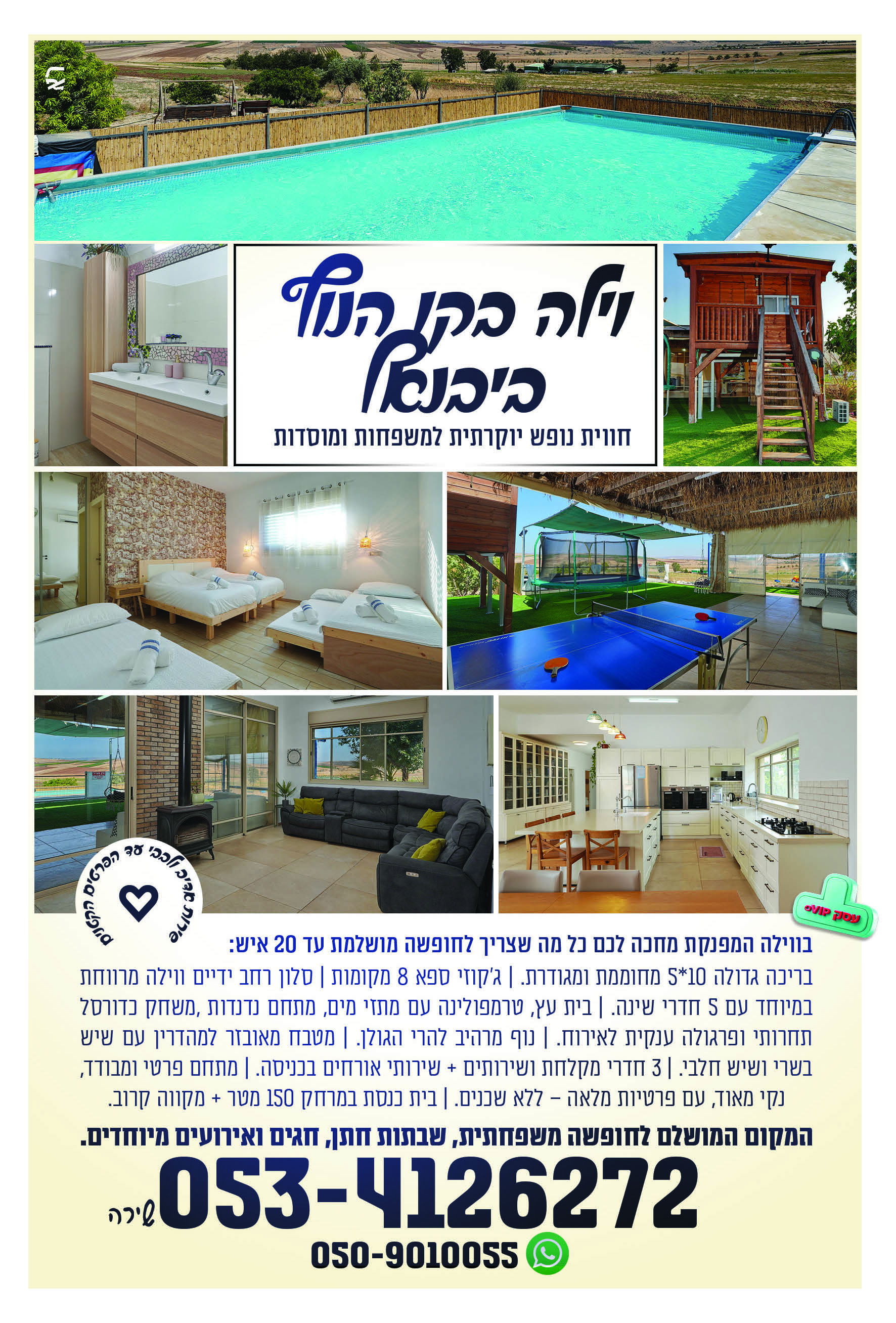 להתרשמות מהאתר שלי היכנס/י כאן!שם העסק: וילה בקו הנוף | תיאור העסק: חופשה משפחתית מושלמת | שעות פעילות: שבתות, חגים ומועדים, אמצע שבוע, חופשים | כתובת: יבנאל | פלאפון: 050-9010055 וואטסאפ | 053-4126272 | מייל: Shirabatvard@gmail.com