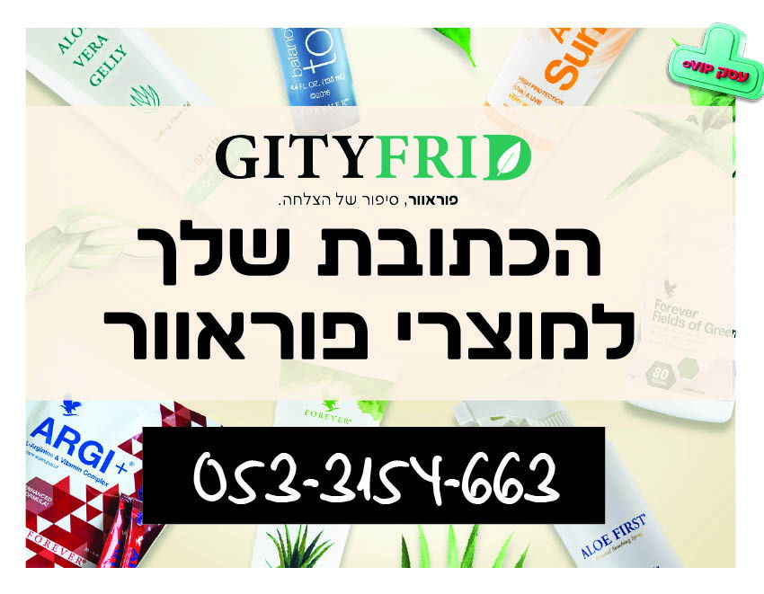 להתרשמות מהאתר שלי היכנס/י כאן!שם העסק: גיטי פריד | תיאור העסק: מוצרי פוראוור, שירות, איכות, ניסיון, מרגישים את ההבדל, מעל 9 שנות וותק | פלאפון: 053-3154663 | מייל: gf.forever.11@gmail.com