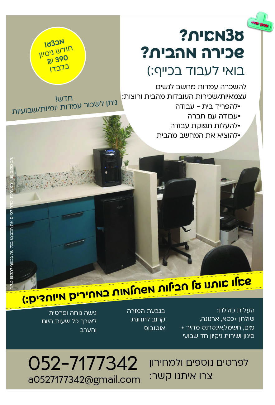 התפנתה עמדת מחשב להשכרה בגבעת המורה לפרטים 050-3572111 | 052-7177342
